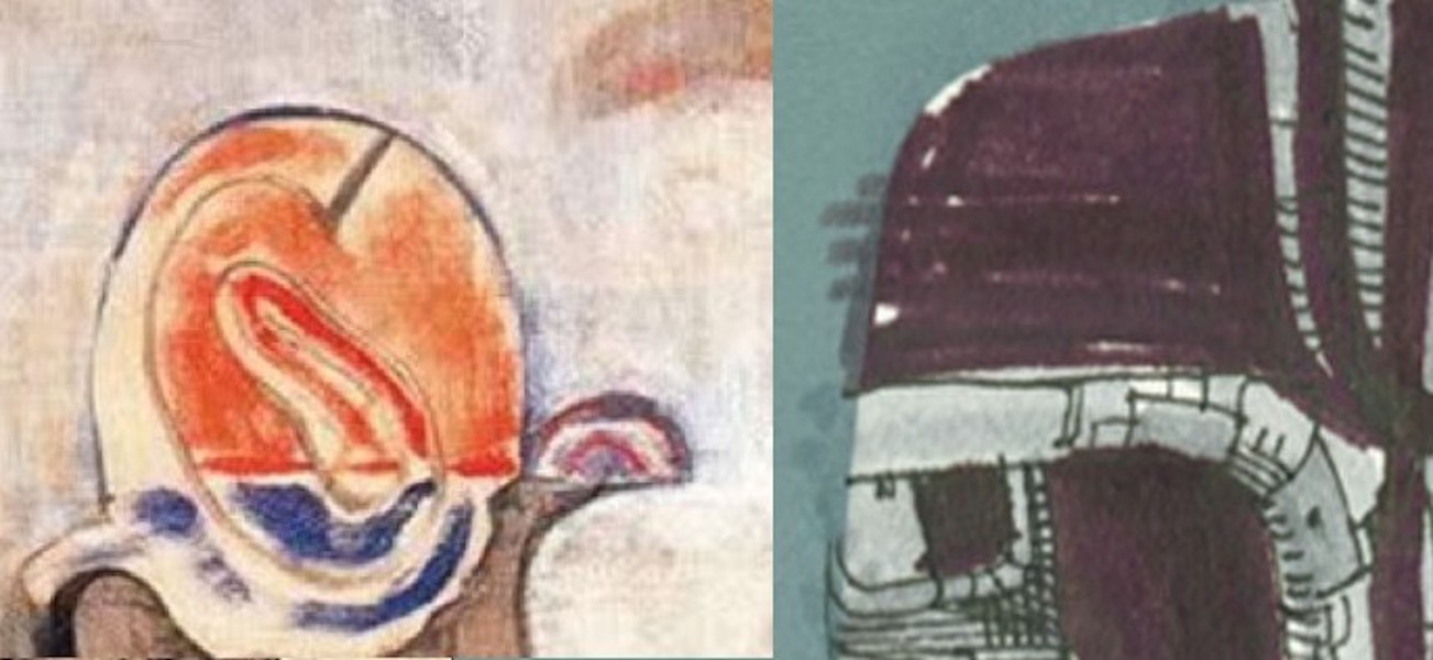 b.vii) The other side of the painting and the corresponding features in the derelict ship.