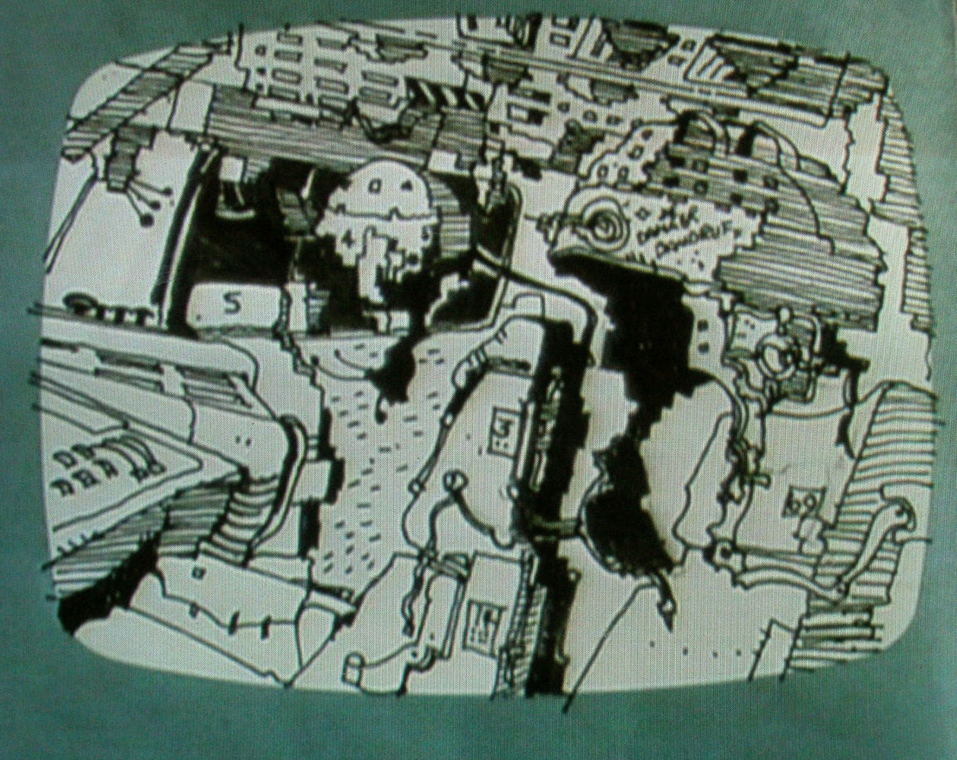 - Ridley Scott: A lot of what you see on the screen is there (the storyboard) After we made alterations, when I started to do the film I then drew a day-by-day shooting storyboard which was printed and issued. While I was doing this, I didn't really know what the Nostromo corridors were going to look like. This is where I got the idea of having the helmets on the back of the seats appear to be "talking" to each other. After the lights come on, the two computers start talking to each other, I was trying to get the storyboard to be more science-fiction-y. (Fantastic Film#11, p27)