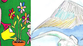 The slanting line of the side of the dress in Dali's painting becomes the raised lower arm in Eisenstein's drawing which in Natali's drawing becomes the left upward slanting side of the wing.