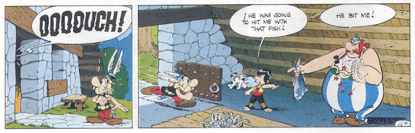 b.iii) Obelix hits Pepe with a fish and so Pepe bites him
